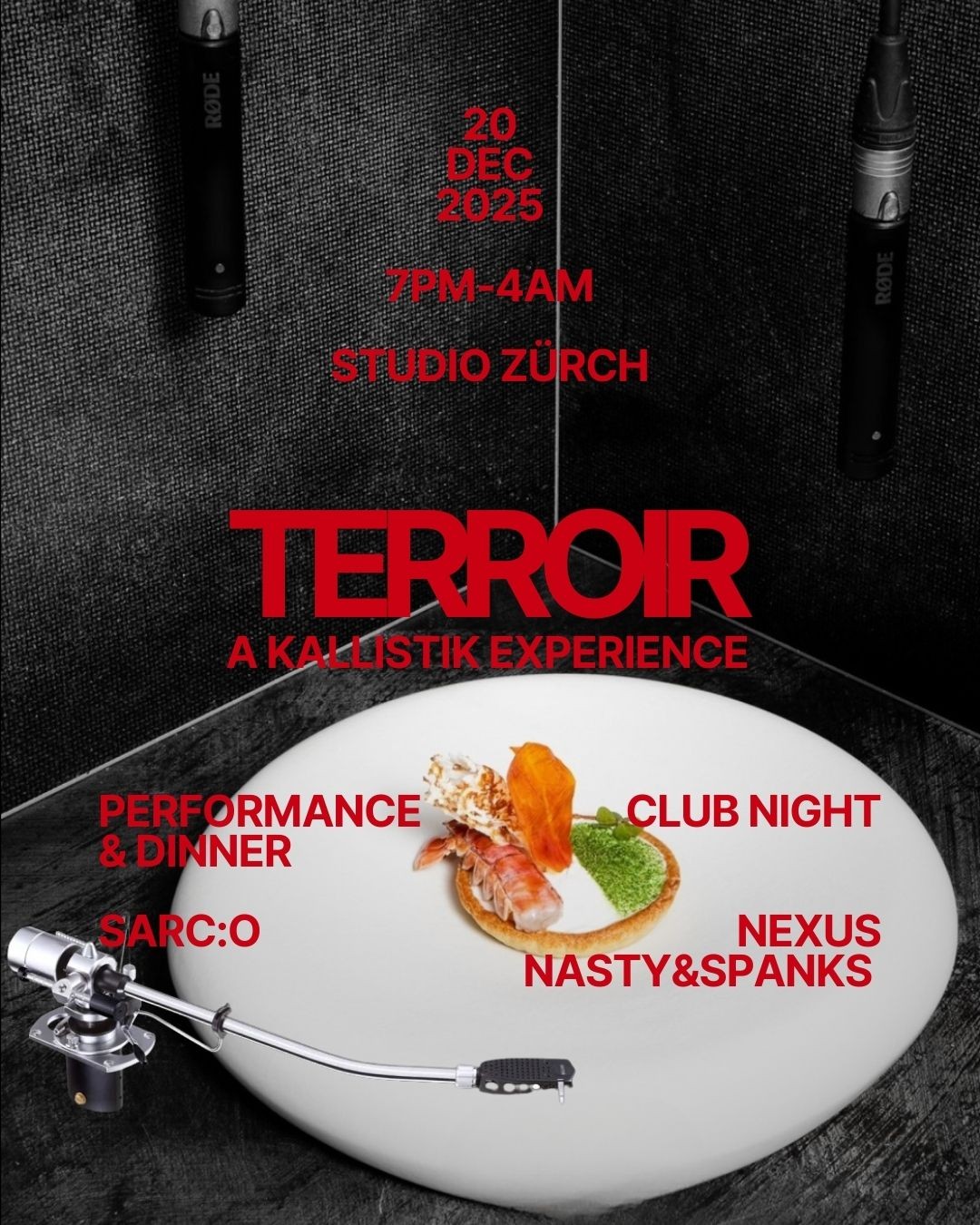 Savor this one-night-only ritual: TERROIR, a bio-generative music performance in sensorial dialogue with wine and cuisine at Studio, Zurich turning into a club night with sets by NEXUS, Kinsuby and Nasty&Spanks.