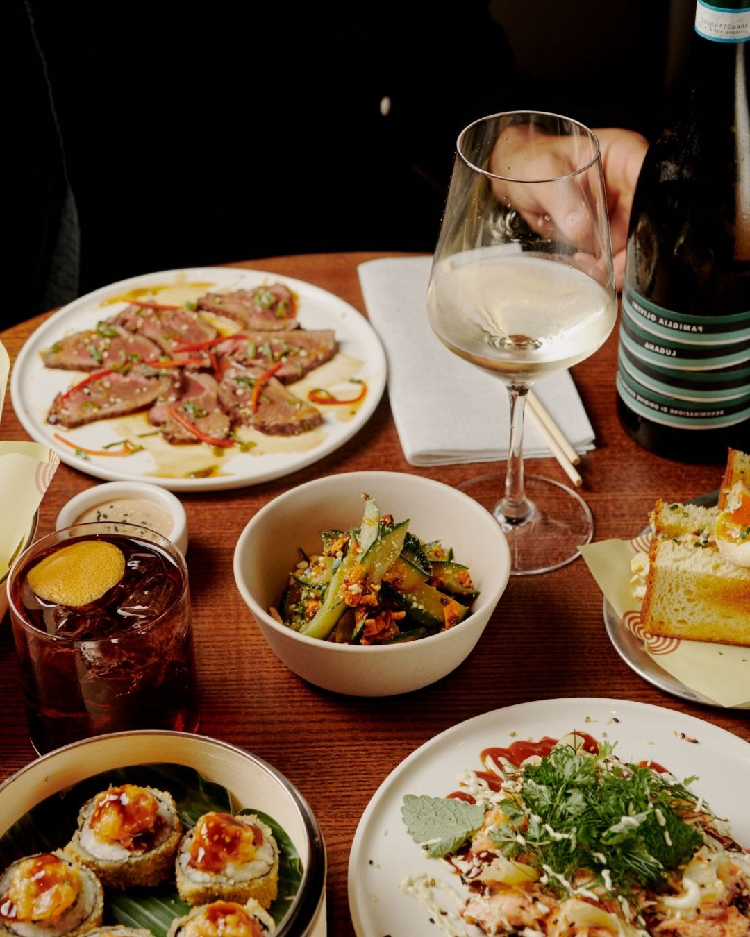 A 4-course Japanese fusion dinner is served, each dish paired with a wine, each wine generating its own evolving musical landscape in real time.